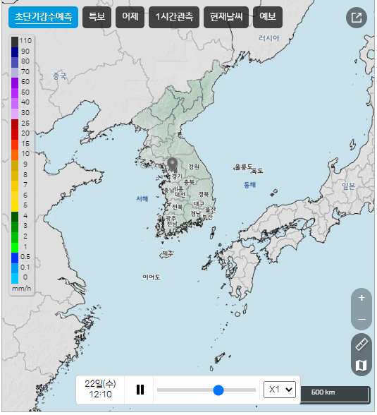 그래서 직접 레이더 영상에서 비구름의 움직임을 보면서 비 예보를 해 보는 능력도 필요합니다. 몇 시간 뒤의 예보는 비구름 움직이는 것을 보면 예측도 가능합니다.